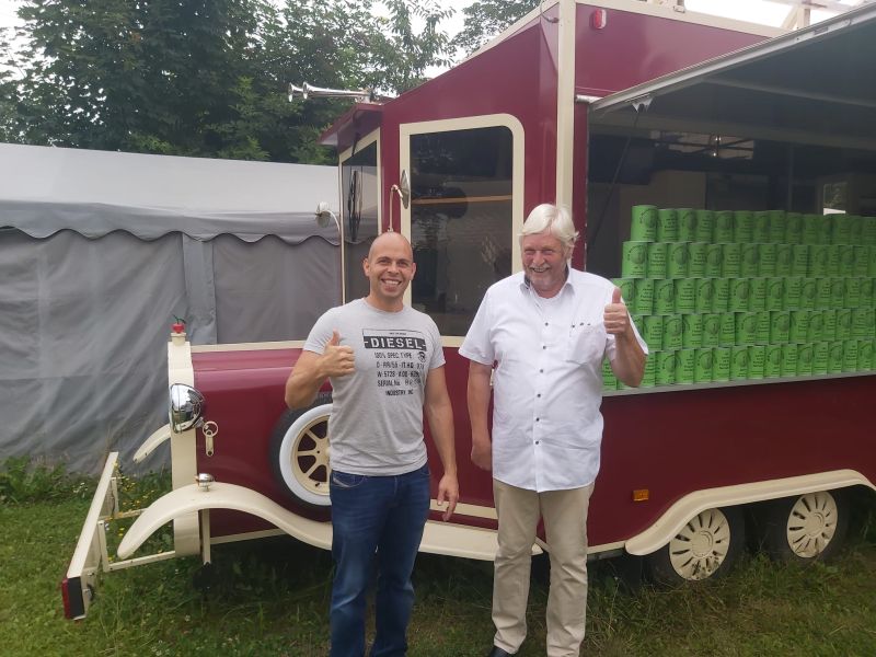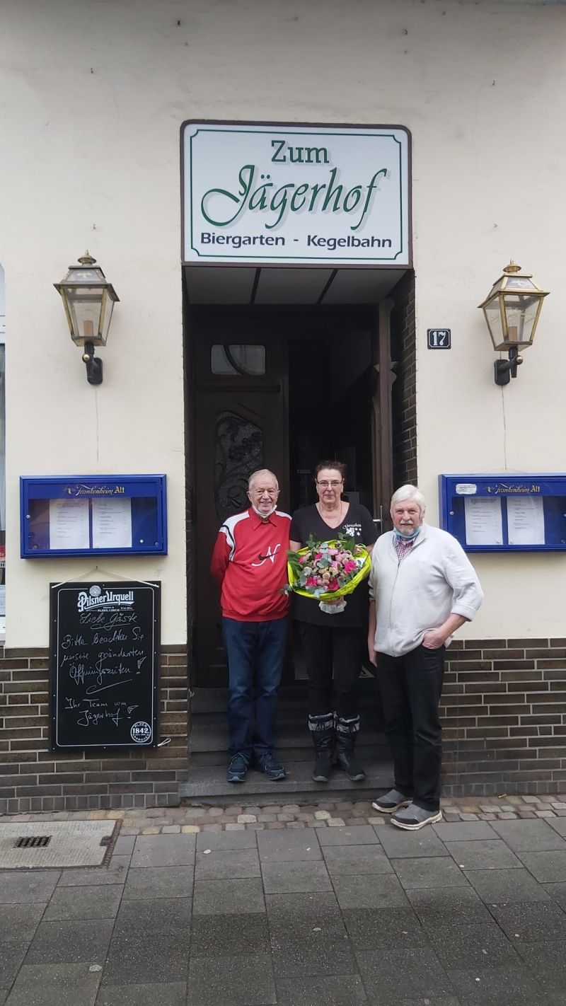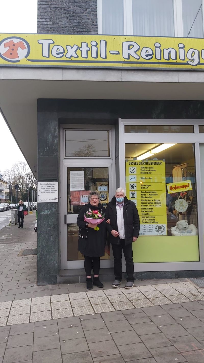 Die beiden Fotos vor dem Geschäften wurden bei den Geschäftsleuten gemacht die einen besonderen Einsatz gezeigt haben und zum Dank gab es einen schönen Blumenstrauß.