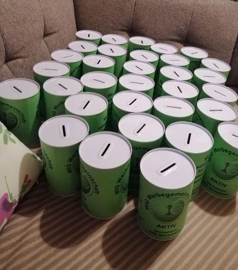 Dann stellten wir die Dosen in Geschäften in Gerresheim und Umgebung